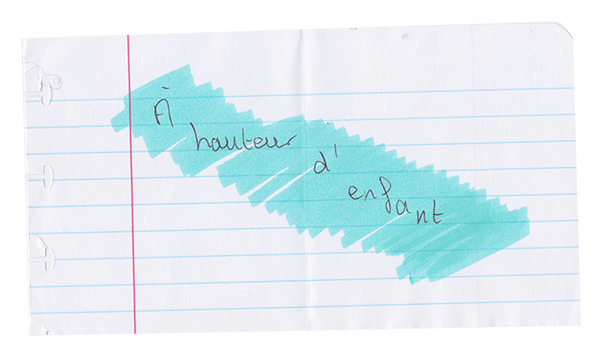 Pour plus tard, pour exposer notre travail, on imagine un objet en volume, une sorte de totem regroupant toutes les traces, dessins, paroles de soignants et enregistrement audio, qui pourra voyager dans les différentes structures partenaires des constellations de Saisir au passage.