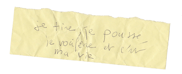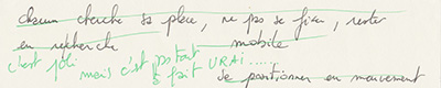 Suite aux atelier nous avons demandé au soignants d’écrire, des mots, des phrases sur leur ressenti personnel de ce qu’ils ont pu vivre pendant la séance. Une récolte de mots qui raconte la pluralité des regards et des sensations comme corps dansant. à la fin de la semaine, se dessine une sorte de cadavre exquis à la manière du jeu des surréalistes.