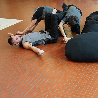Pièce chorégraphique in situ mettant en résonnance un trio de danseurs et un trio de musiciens avec une masse molle.